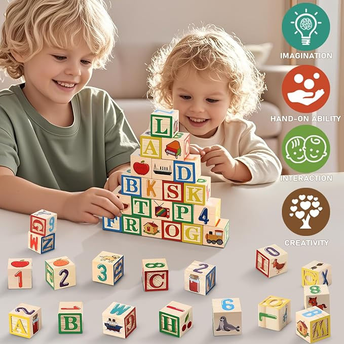 - Ideal Gifts for Kids: Our wooden building blocks for toddlers 1 - 3 are a Montessori preschool educational set and alphabet learning spelling and matching game for 1 2 3 years old; It is a perfect birthday gift for 1 2 3 4 years old preschool, kindergarten, boys and girls